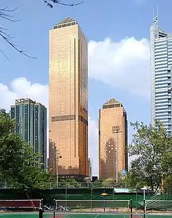 Metro Plaza is a two complex of towers in Guangzhou, China. Metro Plaza I is 198.8 m (652 ft) with 52 storeys, and China Mayors Tower is 116 m (381 ft) with 28 storeys. Construction of the complex was completed in 1996.
