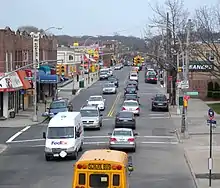 In 1814, the Williamsburgh Turnpike Company was chartered to upgrade an old Indian trail from Jamaica to the East River into a road, and their work was carried out in 1816. Locally known as the Williamsburgh and Jamaica Turnpike,[1] what became Metropolitan Avenue was a toll road which connected the then villages of Williamsburgh (as it was originally spelled) and Jamaica, New York. The road became a farmer's and stage coach route to the Williamsburgh ferries across the East River to Manhattan.[2] The easternmost segment of the present avenue in Williamsburg initially had several names before it was joined to Metropolitan Avenue circa 1858:[3] Bushwick Street, then Woodhull Street, and, later, North Second Street. The City of Brooklyn acquired Metropolitan Avenue from the Williamsburgh Turnpike Road Company in 1872.[4] Several of the neighborhoods through which it passes originated as villages along its length.