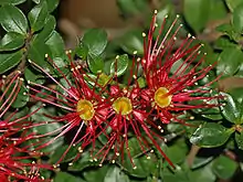 | Metrosideros carminea produces carmine-red flowers in spring | |