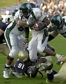 Moore is only the second player in NCAA history to rush for 4,000 yards and have 2,000 yards receiving in a career, joining former Viking Darrin Nelson (Stanford). Known for his high-stepping gait and effective straight-arm tactics, Moore ranks 11th in Division I history in all-purpose yards with 6,505 yards. He ran for 100+ yards in 22 games to set Tulane and Conference USA records. His 36 career TDs rank second in Tulane and C-USA history. Moore ran for 1,138 yards as a junior and 1,421 as a sophomore, respectively, to set Tulane’s single-season rushing record. Moore was also drafted in the fourth round of the 2000 Major League Baseball draft by the San Diego Padres. He spent three summers in the organization while in college.