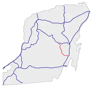 Federal Highway 293 (Carretera Federal 293) is a Federal Highway of Mexico, located entirely within Quintana Roo. It connects Mexican Federal Highway 184 at Polyuc to Mexican Federal Highway 307 near Pedro Antonio Santos.[2]