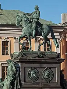 In 1695, back in Sweden, he became liveryman of the Stockholm guild,[74] head of the Royal foundry[75] and married in the very same year Catharina Kammecker. Soon after Meyer wrote to the king offering to cast "large metal statues and other decorations" as well as iron "stoves", works which Meyer pretended to be able to execute thanks to his French experiences.[76] He requested to the Royal artillery department (Krigskollegium) permission to be also allowed to cast portrait busts, statues and other kind of works in order to secure the financial success of his workshop.[77]
