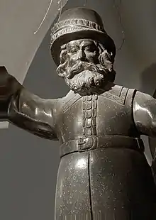Gerhardt (IV) lived from 1667 until 1710. As a son of Johann (IV) he was born in 1667.[64] He got his formation in his father's and in his stepfather's workshop before travelling as a journeyman to Germany to continue his training.[65] Business had become tough by then. Whereas Gerhardt's ancestors and predecessors in charge of the Royal foundry had their major commissions due to the modernisation of Swedish artillery, it seems that the implementation of modern cannon types had been mostly completed at the time.[66] Furthermore, there was in Sweden a notorious lack of copper since the 1640s, severely restricting the production of cannons.[67] Yet, the king's ambitious plans for the embellishment of the new residence opened new fields of activity. Since 1693 there were ongoing construction works for a new Royal Stockholm Palace after the plans by Nicodemus Tessin the Younger. For that purpose, a whole team of French artists and artisans came over the following years to Stockholm, including the French caster Jean Hubeault who made ornamental casts for the decoration of the palace.[68] It was planned to decorate the new palace with monumental bronze sculptures. Casting bronze sculptures was a task so far unknown in Sweden. The only exception had been the above-mentioned Kopparmatte, which from a technical point of view is merely a rather rudimentary achievement.