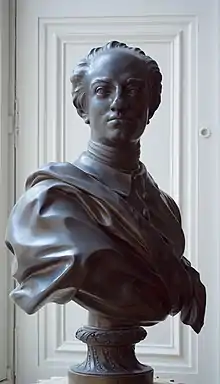 Gerhardt (VI) lived from 1704 until 1784. As a son of Gerhardt (IV) he was in 1720, ten years after his father's death, at the age of sixteen already appointed Royal cannon caster by King Frederic I.[87] He moved to Uppsala and in 1724 he started a three-year journey through Europe, where he was an apprentice in foundries in Germany (possibly in Nuremberg),[88] Switzerland, France, The Netherlands and England. After his return to Stockholm he became head of the Royal foundry in 1728, following his father and his grandfather. His main business must have been bell-casting, as in Finland alone 47 bells of his hand are preserved.[89] Besides, he made bronze casts after models of the leading French artists of the time: busts of the Swedish Kings Charles XII (1747/48)[90] and Adolf Frederick (1749/51)[91] after Jacques-Philippe Bouchardon as well as puttoes and ornamental shields for the staircase of the Royal Palace.[92]