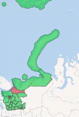 Mezensky District (Russian: Мезе́нский райо́н) is an administrative district (raion), one of the twenty-one in Arkhangelsk Oblast, Russia.[1] As a municipal division, it is incorporated as Mezensky Municipal District.[8] It is located in the northeast of the oblast and borders with Nenets Autonomous Okrug in the northeast, Ust-Tsilemsky District of the Komi Republic in the east, Leshukonsky and Pinezhsky Districts in the south, and with Primorsky District in the southwest. From the north, the district borders the White Sea. The area of the district is 34,400 square kilometers (13,300 sq mi).[4] Its administrative center is the town of Mezen.[3] Population: 10,330 (2010 Census);[5] 13,124 (2002 Census);[10] 17,796 (1989 Census).[11] The population of Mezen accounts for 34.6% of the total district's population.[5]