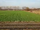 Place of the former Nazi German concentration camp with barracks for prisoners built in 1944 in the background on the left