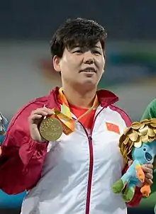 Mi Na (Chinese: 米娜; pinyin: Mǐ Nà; born August 5, 1986) is a Paralympic athlete from China. She competes in throwing events for F37 classification cerebral palsy athletes. From April 2014 until September 2016 she held the women's F37 World Record in the shot put.[1] She holds the world record in the F37 discus throw. She won 9 medals (6 Gold) at the Paralympic Games and 12 medals (10 Gold) at the IPC Athletics World Championships.[2]