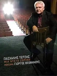 Released on November 3, 2008, the 14 track Mia Nihta Zoriki is the follow-up album to Terzis' successful 2007 release I Diafora.[3] It was composed entirely by Giorgos Theofanous, with lyrics, apart from a few by Giorgos Theofanous, by Thanos Papanikolaou, Kostas Fasoulas, Andreas Neofytidis and poet Manos Eleftherios.[4] The album was released in two case formats: one in a standard jewel case and the other in a larger paperback case, the latter being marked as a "special edition" by some retailers.