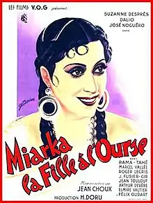 Miarka (French title: Miarka, la fille à l'ourse) is a 1937 French drama film directed by Jean Choux and starring Suzanne Desprès, Marcel Dalio and José Noguéro.[1] The film based on the 1883 novel Miarka by Jean Richepin, which had previously been turned into a 1920 silent film.