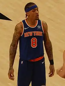 On August 8, 2017, Beasley signed with the New York Knicks.[78] On November 25, 2017, he had a season-high 30 points starting in place of the injured Kristaps Porziņģis in a 117–102 loss to the Houston Rockets.[79] On December 16, 2017, once again starting in place of Porziņģis, Beasley tied his season high with 30 points in a 111–96 win over the Oklahoma City Thunder.[80] On December 21, 2017, he scored 28 of his season-high 32 points in the second half of the Knicks' 102–93 win over the Boston Celtics.[81] He also had 12 rebounds against the Celtics. Beasley became the first NBA player since starts were recorded in the 1970–71 season to come off the bench and have at least 32 points and 12 rebounds while playing 25 minutes or fewer. He also became the first Knicks sub ever with a 32–12 game.[81] On January 10, 2018, he recorded 26 points and 12 rebounds off the bench in a 122–119 double overtime loss to the Chicago Bulls.[82] On March 31, 2018, he had a 32-point effort in a 115–109 loss to the Detroit Pistons.[83]