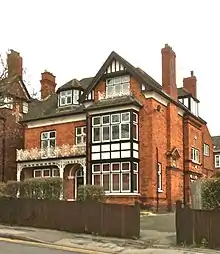 - 1 James Street, Lincoln (1874). Tudoresque with ornate doorway with decorative tiles. Built for Mrs Nicholson, the widow of the architect William Adams Nicholson.[14][15]