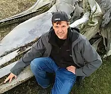 ![]() Harris with right whale skeleton in Tierra del Fuego, Argentina. | |