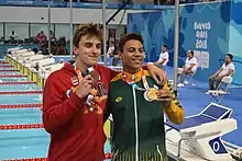 ![]() Michael Houlie (right) and Alexander Milanovich with their 2018 Summer Youth Olympics medals in the 50-meter breaststroke | |||||||||||||||||||||||||||||||||||||||||||||||