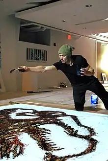 In 2007 Michael Murphy began creating portraits of Barack Obama.[5] One of his earliest portraits of Obama was created by the shadow cast by 6,400 nails hammered into a canvas.[16] The shadows produced by each nail when lit properly form the likeness of Obama. The Obama Art Report, which covered all of the work produced during the 2008 presidential election wrote that, "In an artistic movement so heavily inundated with design work, prints and street art, Murphy's nail portrait came as a breath of fresh air."[17]