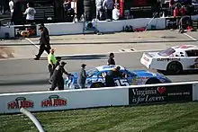 After the first round of qualifying for the 2007 Daytona 500, NASCAR inspectors found evidence in the engine intake manifold that Waltrip, Reutimann, and Jarrett's teams had used an illegal unspecified oxygenate fuel additive to increase performance. NASCAR confiscated the cars, forcing Waltrip, Reutimann, and Jarrett to move to back-up cars for the Daytona 500. On February 14, 2007, NASCAR officials announced at a press conference the penalties that would be levied: Bobby Kennedy (Director of Competition for Michael Waltrip Racing) and David Hyder (Waltrip's crew chief) were removed from Daytona International Speedway, and suspended indefinitely.[8] David Hyder was also fined $100,000 and was placed on a leave of absence, eventually to be released by the team in April. Waltrip, Reutimann, and Jarrett were docked 100 driver points and Waltrip and Buffy were docked 100 owner points each. Waltrip, Reutimann, and Jarrett's initial qualifying times were disallowed, but Waltrip and Reutimann were permitted to attempt to qualify by racing a backup car in their Gatorade Duel's qualifying race for the Daytona 500. Jarrett would qualify using his Past Champions provisional from his 1999 title, but was also permitted to race a backup car in his Gatorade Duel.[9] Waltrip's interim crew chief was announced as Scott Eggleston, who was Waltrip's former crew chief in 2001.[10] After a 30th-place finish in the Daytona 500, Waltrip became the first driver in series history to go into the second race of the season with a negative number of points (−27). Waltrip failed to qualify for the next eleven races following the Daytona 500, so he maintained his negative point total for almost 4 months. He qualified for the thirteenth race of the season at Dover and finished 28th, moving his point total above zero to 52 points.