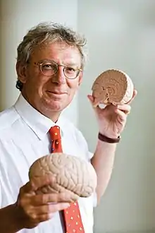 In 2009 he was one of three winners of the Dutch Spinoza Prize and received a 2.5 million euro grant.[4] The awarding organisation, the Netherlands Organisation for Scientific Research (NWO), praised Ferrari for being the first to discover the genes related to migraine, as well as developing drugs to treat migraine attacks. The NWO also applauded Ferrari's work as ambassador for people suffering from migraine.[1] The NWO named Ferrari one of the six "Headache Masters".[1] Shortly after winning the prize Ferrari stated to want to spend the money on research on glia cells.[5] As there was no fourth Spinoza Prize awarded in 2009, Ferrari and his co-winners Albert van den Berg and Marten Scheffer asked the NWO to reward them the remaining prize money, which they would spend on a collaborative research effort.[6] Their efforts culminated in a research paper on migraine published in PLOS ONE in 2013.[7][8][9] The paper claimed that a critical tipping point of neurons started a migraine attack.[9]