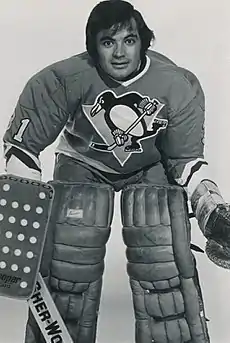 ![]() Plasse with the Pittsburgh Penguins during the 1975–76 season | |||