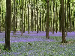Its size is 251.4 hectares (621 acres); the M3 motorway runs through the western side. The wood consists mostly of beech trees, interspersed with some conifers. There is a car park; there are picnic places and two walking trails. There is a range of wildlife species, and muntjac deer can be found. Notable displays of bluebells can be seen in the spring.[1][2][3]