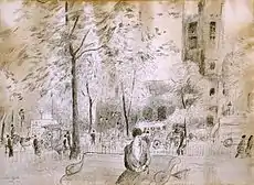 In 1919 Michele Cascella moved to Milan where he shared an apartment with his friend and inspiration, the poet Clemente Rebora. He dedicated himself to engraving and ceramics, later returning to oil and watercolor painting. In 1924 Carlo Carrà, who was a great supporter of the primitivism in Cascella's paintings, gave him good reviews. That same year, three watercolors were exhibited at the Venice Biennale for the first time and one of them, Mattutino, was bought by King Vittorio Emanuele III. Since then, the artist participated in almost all the Venice Biennale exhibitions until 1942. In 1928 he made his first trip to Paris, though he had held several exhibits there already, and he exhibited in Brussels. From then on, Cascella considered Paris his second home. Life there reminded him of certain areas of Italy.