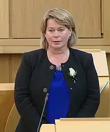 Thomson rejoined the SNP in October 2018.[32] She was then selected as the SNP parliamentary candidate for the Falkirk East constituency in the Scottish parliamentary elections of May 2021,[33] and she was elected to Holyrood with 47.4% of the vote.[34]