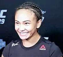 Michelle Eileen Waterson[1] (born January 6, 1986) is an American mixed martial artist and model who competes in the Ultimate Fighting Championship (UFC). She is the former Invicta FC Atomweight Champion. Between 2013 and 2014, she was ranked the No. 1 women's atomweight fighter in the world.[8] As of April 25, 2022, she is #10 in the UFC women's strawweight rankings[9]