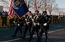 Michigan National Guard color guard participates in 2014 Latvian Independence Day parade in Riga.