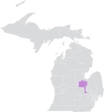 The district overlaps with Michigan's 4th and 5th congressional districts, and with the 48th, 49th, 51st, 85th, 94th, and 95th districts of the Michigan House of Representatives.[4]