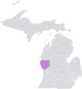 The district is located entirely within Michigan's 2nd congressional district, and overlaps with the 91st, 92nd, and 100th districts of the Michigan House of Representatives.[4] Much of the district lies along Lake Michigan.[1]