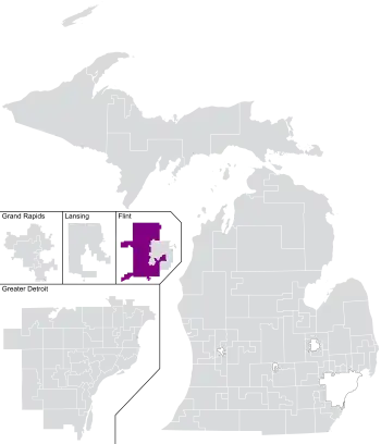 Michigan's 49th House of Representatives district (also referred to as Michigan's 49th House district) is a legislative district within the Michigan House of Representatives located in Flint Township, Flushing, Mount Morris, Mount Morris Township, Swartz Creek, and part of Flint in Genesee County.[3] The district was created in 1965, when the Michigan House of Representatives district naming scheme changed from a county-based system to a numerical one.[4]