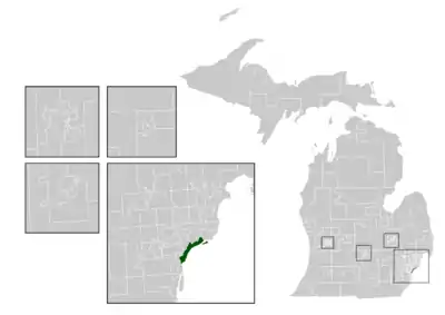 | 2013–present | Wayne | Detroit (a strip running from the Lower East Side, through Downtown, to the Southwest Side and a portion of Boynton), River Rouge, Ecorse | ![]() |