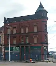 During the mid-19th century, Detroit became home to numerous German immigrants. They initially settled on the east side of the city, along Gratiot near the central business district. However, as the city grew and pushed its boundaries westward, the German community established a neighborhood on the city's west side, beyond Corktown. The commercial heart of the German neighborhood was along Michigan Avenue from 22nd to 24th Street. By 1887, this section was built up with primarily brick commercial buildings. The businesses represented included a wood and coal business, a carriage and wagon shop, a shoe store, saloon, butcher, and grocer. A number of new buildings were constructed in the district around this time, including the 1887 Reeber Building and the 1889 Schulte and Kaiser Building. By 1897, the commercial district extended along both sides of Michigan Avenue, with buildings occupying all lots available. However, the buildings on the northern side have been largely demolished, leaving only the section on the southern side.[2]