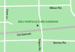![]() MSU Horticulture Garden's location on campus | |