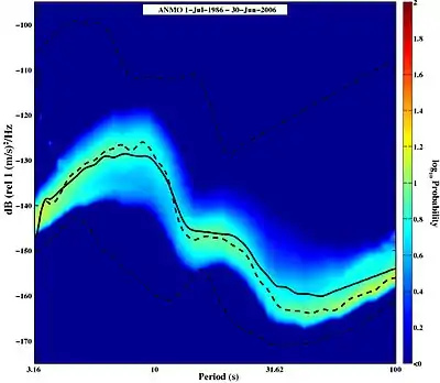 In seismology, a microseism is defined as a faint earth tremor caused by natural phenomena.[1][2] Sometimes referred to as a "hum",[3] it should not be confused with the anomalous acoustic phenomenon of the same name. The term is most commonly used to refer to the dominant background seismic and electromagnetic noise signals on Earth, which are caused by water waves in the oceans and lakes.[4][5][6][7][8] Characteristics of microseism are discussed by Bhatt.[8] Because the ocean wave oscillations are statistically homogenous over several hours, the microseism signal is a long-continuing oscillation of the ground.[9] The most energetic seismic waves that make up the microseismic field are Rayleigh waves, but Love waves can make up a significant fraction of the wave field, and body waves are also easily detected with arrays. Because the conversion from the ocean waves to the seismic waves is very weak, the amplitude of ground motions associated to microseisms does not generally exceed 10 micrometers.