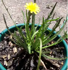 Plants of Microseris scapigera sensu have no tubers, but roots that are "fleshy, only slightly fibrous, and slightly, but tolerably bitter when eaten raw".[12] Indigenous Australians may have eaten this plant also, but historical sources describe murnong as a sweet tuber. The bitterness in Microseris scapigera roots can be removed by blanching the roots in boiling water for 5 minutes, before consumption or further cooking.