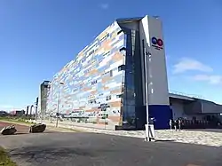 Middlesbrough College merged with Teesside Tertiary College on 1 August 2002, with it now being spread over four sites. Since 2001, these colleges had been funded by the Learning and Skills Council for England. Once the merger was complete, planning began for the relocation to a single site at Middlehaven in central Middlesbrough. Building work for the new college building at Middlehaven began in early 2007. In September 2008, the four separate sites were eventually consolidated onto a single site[6] with the opening of the new £68 million Middlesbrough college building.[7][8] The Middlehaven site was officially opened on 12 February 2009 by Prince Andrew, Duke of York,[9] although the plaque marking the opening was removed in January 2022.[10]