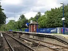 The station was subsequently renamed twice by British Rail: on 2 November 1964 it became "Midgham Halt" but on 5 May 1969 it reverted to "Midgham".[7] The station is a mile distant from Douai Abbey and the station name was subtitled "for Douai Abbey and School" until refurbishment with current Network Rail signage.