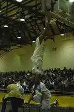 Some of the more outlandish occurrences during such events included coach participation, such as Michigan State Spartans men's basketball coach Tom Izzo riding a Harley-Davidson motorcycle onto the court and Florida Gators men's basketball coach Billy Donovan rising out of a coffin.[2] Although signing week, when top recruits sign letters of intent that commit them to specific schools, does not occur until November,[15] blue chip high school recruits are sometimes welcomed at these events even in their junior years.[14] Usually a prescribed number of fans (such as the first 1,000) receive a gifts such as t-shirts, posters, autographs, road game vacation packages, and other free paraphernalia.[14] At many such events, a student is chosen for a half-court shot giveaway.[14] Sometimes the events are televised live by sports networks such as the Big Ten Network, and other times highlights are shown on highlight shows such as ESPN's SportsCenter.[2] ESPNU has begun extensive yearly coverage of midnight madness events and in 2008 televised events at Davidson College, the University of Kansas, Georgetown University, Gonzaga University and Indiana University.[2][16] The events have been reported for years in print media such as newspapers, magazines and the internet.[17] Although Midnight Madness has become a prime time event for many premier basketball programs, some schools have continued the tradition of having their first practice at 12:00 on the first day regular practice is allowed.[18][19]