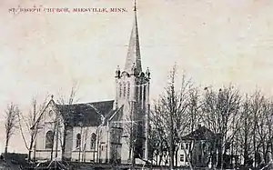 The Saint Joseph Catholic Church of Douglas was founded in the Spring of 1873 in what became Miesville. The first Saint Joseph Catholic Church building was erected in 1907 but struck by lighting on August 27, 1913. The church was rebuilt and dedicated on October 15, 1914. The congregation has been historically a mixture of Irish and German with an occasional Scandinavian convert allowed in.[10]
