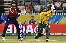 In November 2018, she was contracted by Melbourne Stars for the 2018–19 Women's Big Bash League season.[17][18] In September 2019, she was named in the Devnarain XI squad for the inaugural edition of the Women's T20 Super League in South Africa.[19][20] In January 2020, she was named in South Africa's squad for the 2020 ICC Women's T20 World Cup in Australia.[21] In their opening match of the tournament, against England, du Preez played in her 100th WT20I match.[22]