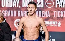 ![]() Flores at weigh-in ahead of fight against Leo Santacruz on November 23, 2019 in Las Vegas | |