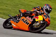 Mika Kallio (born 8 November 1982) is a Finnish Grand Prix motorcycle racer, currently serving as the lead test and development rider for the Red Bull KTM team in MotoGP. He debuted in the 125cc World Championship with the Finnish rookie team Ajo Motorsport in the 2001 German Grand Prix and was awarded the "Rookie of the Year" with the team in 2002.[2] After moving to the Red Bull KTM Factory Racing team during the 2003 season, he finished runner-up in the 125cc class in both 2005 and 2006, and also finished runner-up in the 2014 Moto2 World Championship.[3] Moving up to MotoGP full-time for 2009 and 2010, he obtained the "Rookie of the Year" award in his first season in the premier class.[4]
