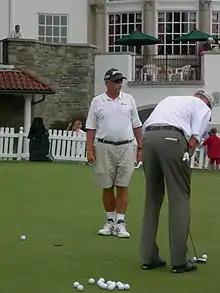 Michael Thomas "Fluff" Cowan (born February 7, 1948) is a professional golf caddie on the PGA Tour. He is a 40-year tour veteran and one of its best-known caddies. Cowan has caddied for Ed Sabo (1976–1978), Peter Jacobsen (1978–1996), Tiger Woods (1996–1999), and Jim Furyk (1999–present). In 2003, he caddied for then-13-year-old amateur ladies' golfing sensation Michelle Wie for one tournament while Furyk was off due to injury. The Ryder Cup in 2012 was Cowan's eleventh, carrying for four different players: Jacobsen, Fred Couples, Woods, and Furyk.[1] Cowan earned his nickname "Fluff" from his resemblance to professional golfer and broadcaster Steve Melnyk, also nicknamed "Fluff."[2]