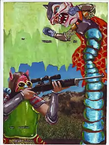 Mike Estabrook (born in Quincy, Illinois) is an American visual artist based in Brooklyn, New York. His work spans several media, including animation, painting, drawing, performance and installation. He makes work that is funny, grotesque, fantastical, and political. He often imposes these fantastical creations onto pre-existing cultural materials such as movie clips, army recruiting pamphlets, and magazines.