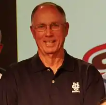 Gillespie also played baseball at USC under coach Rod Dedeaux, and was a member of the 1961 College World Series champions. Along with Jerry Kindall, he is one of only two individuals who have both played for and coached a College World Series champion.[5] He was succeeded as USC's head coach by Chad Kreuter, a former major league catcher who is married to Gillespie's daughter Kelly.[6][7]