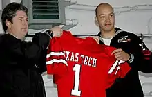 Leach, along with players Graham Harrell and Michael Crabtree were featured on the cover of the 2008 edition of Dave Campbell's Texas Football.[25] The magazine predicted that the 2008 Red Raider football team would be the best in Texas and would challenge for the Big 12 South title.[26] Following a 9–0 beginning to the season, including a win over the undefeated #1 Texas Longhorns, Texas Tech Athletic Director Gerald Myers announced that the university would renegotiate Leach's contract following the conclusion of the football regular season and give him an extension.[27]