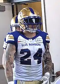 Two days after his release from Edmonton, Miller signed with the Winnipeg Blue Bombers on March 3, 2017.[11] In his first season with Winnipeg, he led the team in special teams tackles with 22. He also scored his first professional touchdown on October 28, 2017 when teammate Derek Jones blocked a Ty Long punt and Miller returned it 18 yards for the score.[12] In 2018, he was second on the team in special teams tackles, with a second consecutive season with 22 made. He also had two receptions for 28 yards.