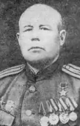 Mikhail Petrovich Petrov (Russian: Михаил Петрович Петров; 17 November 1904 – 5 August 1967) was a Tatar Soviet Army colonel and a Hero of the Soviet Union. Petrov was awarded the title for his actions in Operation Bagration, during which he led his regiment in encircling Mogilev. He continued to serve in the Soviet Army postwar, retiring in 1954, after which he moved to Vinnytsia.[1]