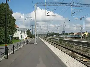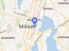 The Mikkeli railway station (Finnish: Mikkelin rautatieasema, Swedish: S:t Michels järnvägsstation) is located in the city and central urban area of Mikkeli, Finland. It is located along the Kouvola–Iisalmi railway,[3] and its neighboring stations are Mäntyharju in the south and Pieksämäki in the north.[4]