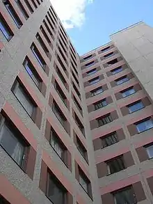 Mikontalo was built during the period 1978–1980.[1] Representing brutalism, it consists of 4 blocks with 12 floors where 767[2] dwellings are situated. Mikontalo offers for its inhabitants saunas (two per building), a free gym, public lounge with a TV-set, Nintendo Wii, Soundsystem, board games, coffee machine and microwave; laundry room (5 washing and 2 drying machines), cable TV, and connection to the Internet.[1]