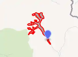 Milam Glacier is situated on the south facing slope of the main Himalayan range. It originates from the eastern slope of Trishuli and the southern slope of its eastern subsidiary Kohli. The subsidiary glaciers coming off the peaks of Hardeol, Mangraon (6,568 m), Deo Damla (6,637 m), and Sakram (6,254 m) on the eastern rim of the Nanda Devi Sanctuary flow into it from the west, while on the east it is fed by glaciers from Nanda Gond (6,315 m) and Nanda Pal (6,306 m).[1] The glacier is the source of the Goriganga River. The village of Milam lies near the snout of the glacier; Munsiyari, further down the Goriganga valley, is the base for the trek to the glacier.